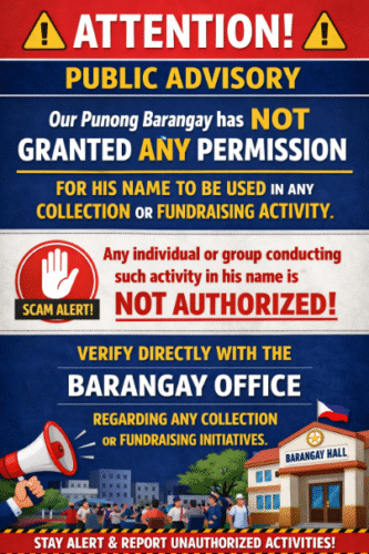 This is to inform the public that our Punong Barangay has NOT granted any permission…