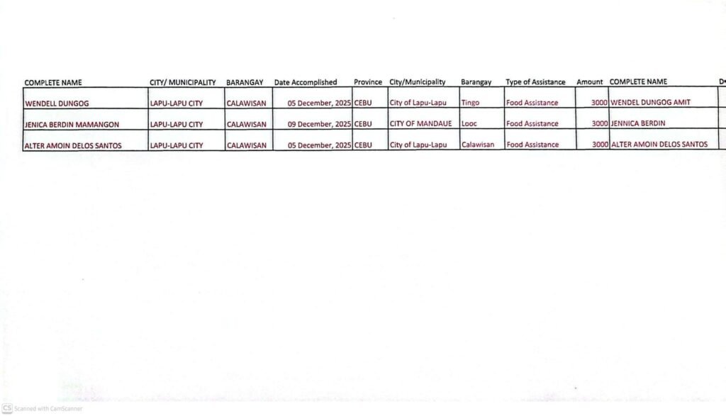 Those who already received Food Assistance last December 2025.