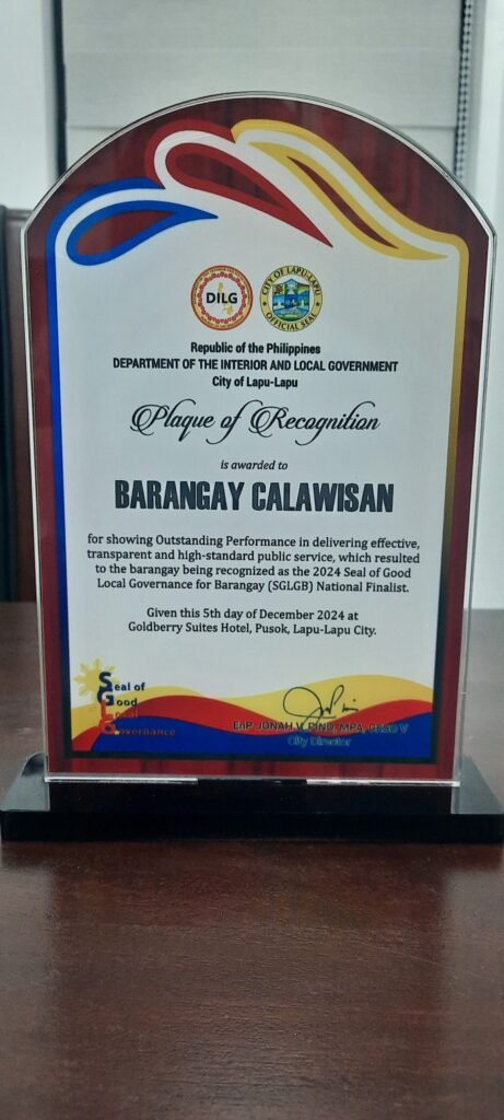 Barangay Kalawisan is proud to be recognized as one of the National Finalists in the Seal of Good Local Governance for Barangay (SGLGB).