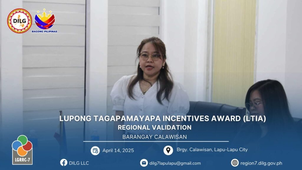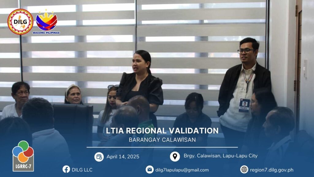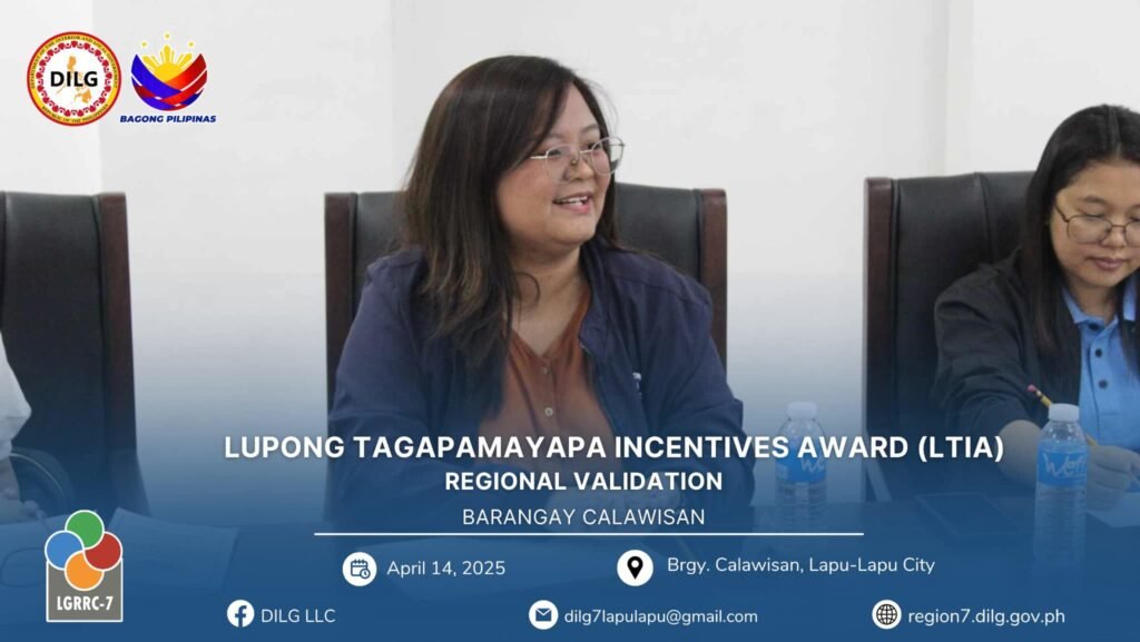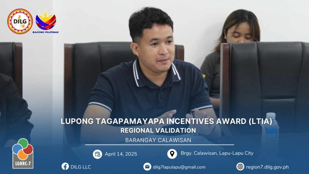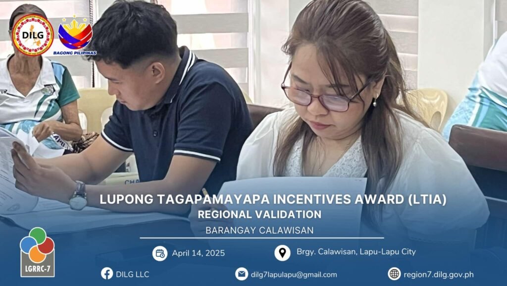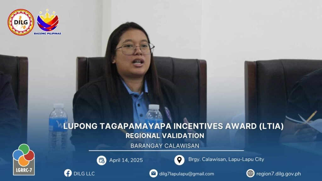Following the City Level Lupong Tagapamayapa Incentives Awards (LTIA) Assessment from March 11 to April 11, 2025, Barangay Calawisan emerged as the top barangay in Lapu-Lapu City, ranking ahead of Basak and Caw-oy. This outstanding performance qualified Calawisan to represent the city in the Regional LTIA Onsite Validation held on April 14, 2025.
